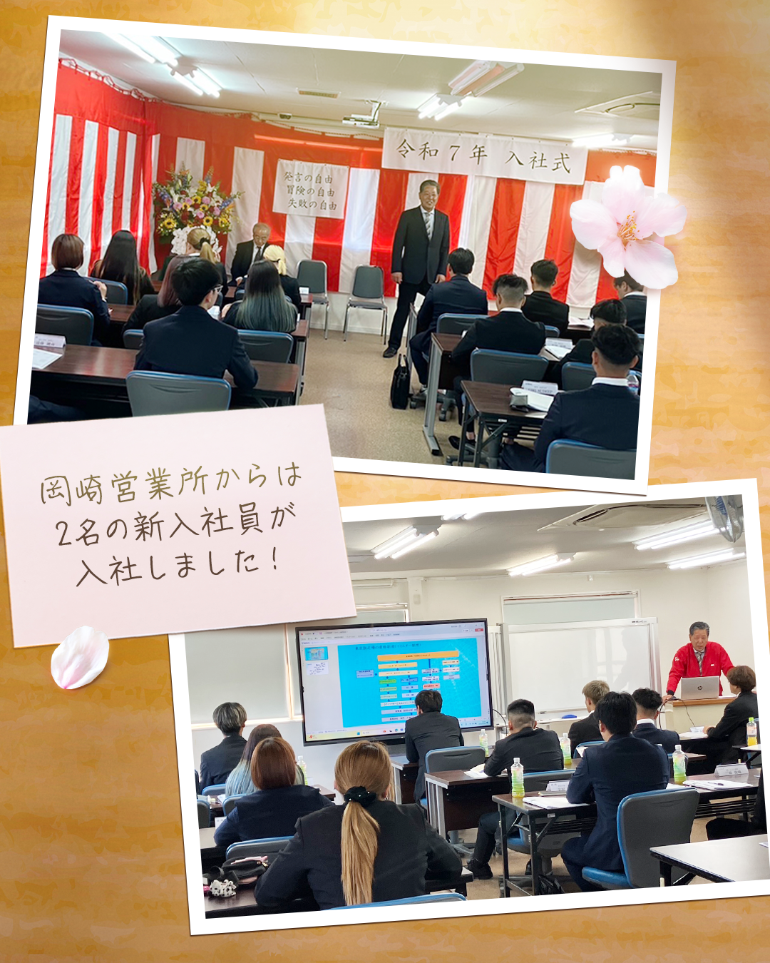 先日、入社式があり岡崎営業所から2名の新入社員が参加致しました😊 他の同期の子と、楽しい時間が過ごせたと思います。 皆、今後が楽しみです🤩