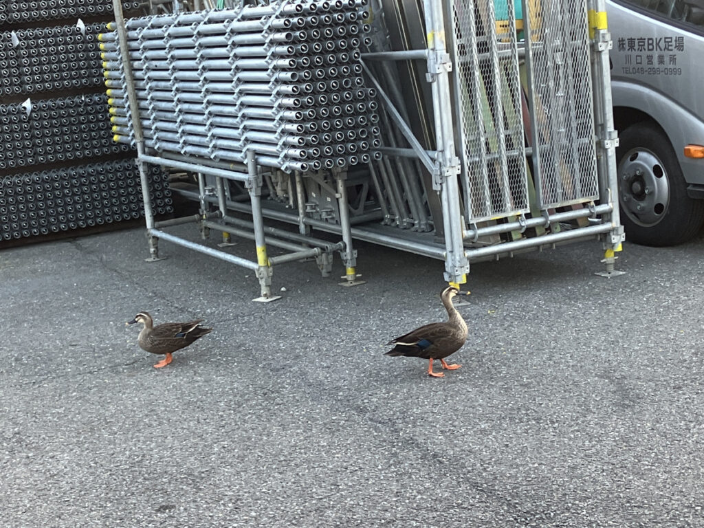 カルガモのお客様が足場の見学に来られました‼︎